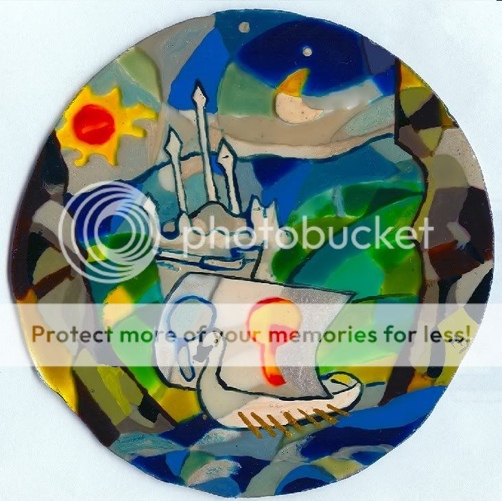 ez az Eärendil hajója Valinorban, cask most üvegfestmény, a vázlatát már lathattátok,mert betettem ide,de mégis szebb üvegen (bár egy kicsit beszürkült,mikor kisütöttem)